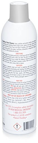 -. Feature : Water-Based formula - No VOC's, non-skin irritant / Powered by Air & non-flammable / Suitable for cleaning all types of stainless steel surfaces & kitchen appliances / Removes fingerP.R.Ints, smudges, grease & residue. Leaves a clean streak-free shine / The safest & most effective aerosol cleaning line ever produced