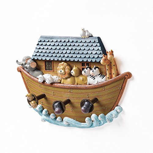 Roman Exclusive "Noah's Ark" Hand Painted Wall Hook with Three Animal Decorated Hooks, 9-Inch