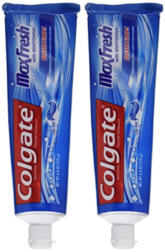 -. Title : Colgate MaxFresh Fluoride Toothpaste with Mini Breath Strips + Whitening: Cool Mint (Pack of 2)