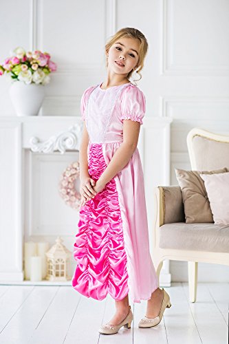-. Brand : La Mascarade -. Color : pink -. Department : girls -. Feature : Сhild's masquerade costume of sweet pink princess / Sleeping Beauty Aurora / Cinderella on the ball by La Mascarade Company / Cosplay costume features fitting bodice, balloon sleeves, flared skirt with contrasting flounces on the front / Perfect for dress up parties, pretend play, Halloween night, stage performances, birthday parties, cosplay and cosplayers, masquerade ball / You may complete the fancy dress with tiara, pearl necklace, bracelets, earrings, magic wand. / All our dress up costumes are available in 3 sizes: for 3-6 years (3'7"- 3'11"), 6-8 years (3'11"- 4'3") and 8-11 years (4'3"-4'7"). -. Label : Mascarade WorkShop -. Manufacturer : Mascarade WorkShop -. PackageQuantity : 1 -. ProductGroup : Apparel -. ProductTypeName : CHILDRENS_COSTUME -. Publisher : Mascarade WorkShop -. Studio : Mascarade WorkShop -. Title : Girls' Little Rose Princess Sleeping Beauty Dress Up Halloween Costume