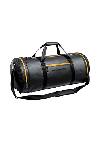 -. Brand : Mercedes -. Color : BLACK -. Department : mens -. EAN : 0014181847897 -. Feature : Black duffel bag with yellow trim / Made of PVC with nylon lining / Features large, zippered main compartment, small compartments inside, multiple outside pockets / mbroidered AMG logo on front. Size approx. 26.3"x13.75"x13.75" / two seat belt material carry handles and a detachable shoulder strap with shoulder pad -. ProductGroup : Apparel -. ProductTypeName : LAGE -. Title : Mercedes Benz AMG Black Duffel Bag with Yellow Trim -. UPC : 014181847897