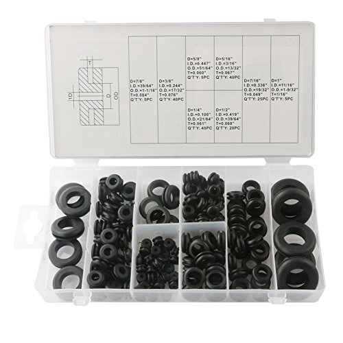 COCODE Rubber Grommet Kit Ring Assortment Set Electrical Gasket Tools for Wire ,Cable and Plug ,8 Different Sizes with Storage Box ,180 Pieces