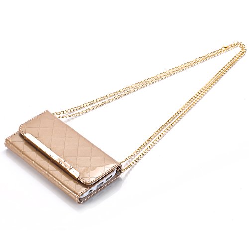 Gold superior purse wallet luxury handbag case cover with detachable shoulder chain strap and credit card slots design, gives your phone premium and fashionable look;