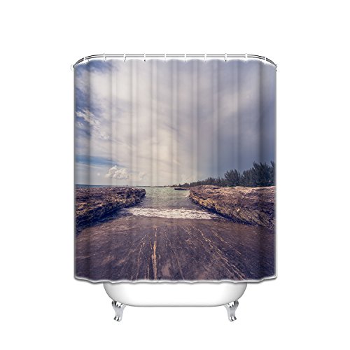 YEHO Art Painting Ocean Decor Collection, Sea View and Clear Sky Picture, Polyester Fabric Bathroom Shower Curtain Set with Hooks 36x72 inches