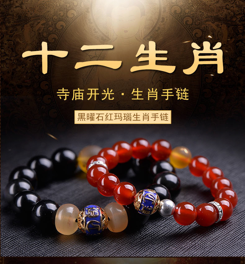 生肖鸡三合太岁金轮莲花华盖宝瓶富贵如意男女手链