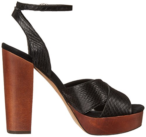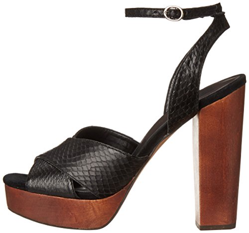 Platform sandal with chunky heel featuring snake-embossed strappy upper