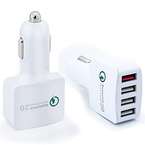 -. Feature : Qualcomm Quick Charge 2.0: Charges compatible devices up to 75% faster. Get up to 8 hours use from just 15 minutes of charging! / Most Powerful: This portable car charger simultaneously charges up to 4 devices and delivers an whopping 54 watts of power at once. / Smart IC Technology: This car charger intelligently identifies your device and provides suitable output current at maximized charging speed. / Built-in safeguards fully protect against over-current, overcharging, short-circuit and overheating. Lightweight & portable,premium upgrade materials design. / Compatible: iPhone 6s/6/Plus, iPad Pro/ Air 2/ Mini 3, Samsung Galaxy S6 Edge, Note 5 and More.(QC 2.0 is limited to NON-QUICK CHARGE device, but it still provide blazing fast charging speed.)