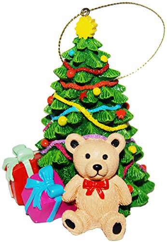 Christmas Tree Decorative Poly Resin Christmas Ornament- Featuring Bear and Presents at the Bottom