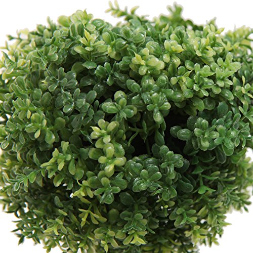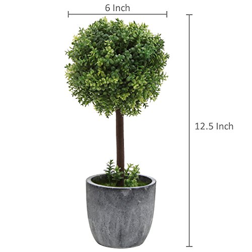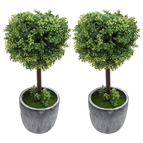 Set of 2 Small Realistic Artificial Boxwood Topiary Trees / Faux Tabletop Plants w/ Gray Ceramic Pots