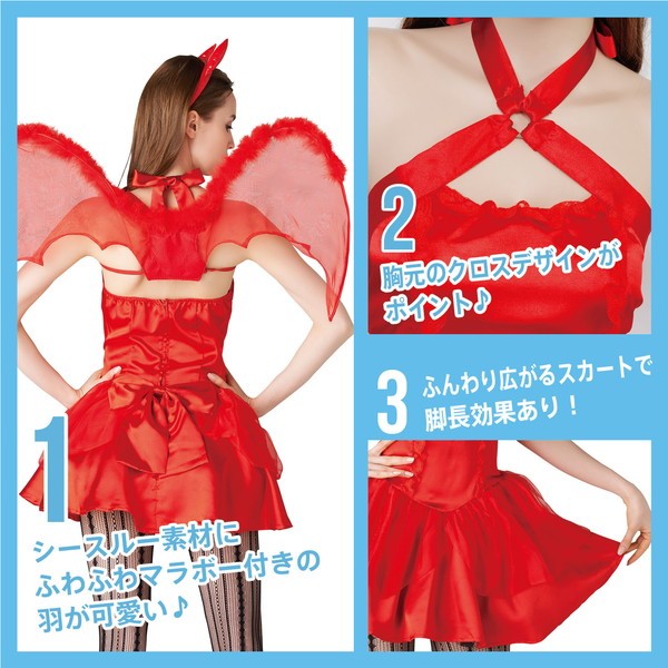 人生は長いようで「短いパーティ」。パーティの主役になるか、傍観者になるかはあなた次第だ。人生と自分を変えて、予測可能な人生を予測不可能なワクワクする人生へと変えるための、楽しさと刺激に満ちたコスチュームブランド「Newyork Wish」。この新しいコスチュームブランドからあなたの「なりたい自分」を探してほしい。そんな願いを込めて!タイトなデザインで、セクシーに着こなせるデザイン☆ストレッチのあるサテンでボディーラインをすっきり♪羽やカチューシャもセットされているので注目大です!