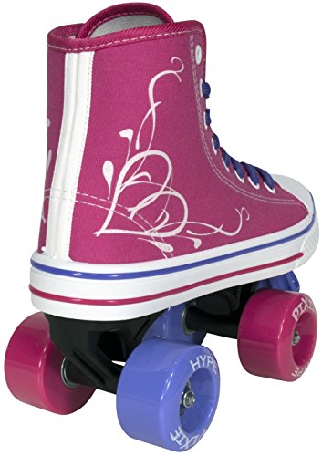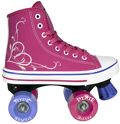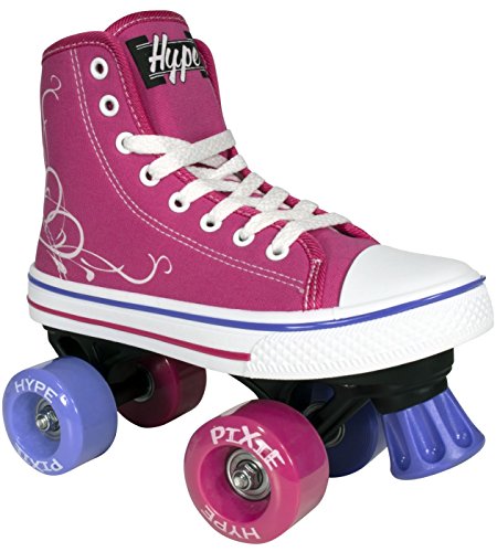 STAND OUT WITH THE HIGH TOP SNEAKER STYLE The HYPE Pixie combines the cute high top sneaker look with the durability and functionality of a well-built quad skate. Why sacrifice style for quality when you can get the best of both worlds? She’ll love showing off her new skates! STOP REPLACING SKATES From boot to base, each skate is crafted with precision using high-quality, pressure-tested materials. Cute, doesn’t mean you have to sacrifice durability. These skates are made to last for as long as your little girl will be able to fit into them. SAFETY FIRST! We don’t take shortcuts when it comes to safety. The front toe braking system handles smooth or sudden stops in all conditions, rain or shine. SKIP STRAIGHT TO THE FUN PART Give her the confidence boost she needs to skate like a pro. The HYPE Pixie is an easy to use quad skate that beginners can instantly enjoy. Skip the steep learning curve and make riding fun fast! FUN ANYWHERE The Hype Pixie features urethane wheels made for both indoor and outdoor fun. The easy-push free rolling bearings make gliding and balancing a breeze. These skates can take your kid wherever she desires. KIDS LIKE BEING UNIQUE The Pixie, it is a good looking skate. From the bright and energetic colors to the artsy swirly heart decal, these skates are the epitome of unique. Each pair of skates come with three sets of laces (White, Raspberry, and Purple or Teal) because kids love color options and you love easy replacements. 0 |