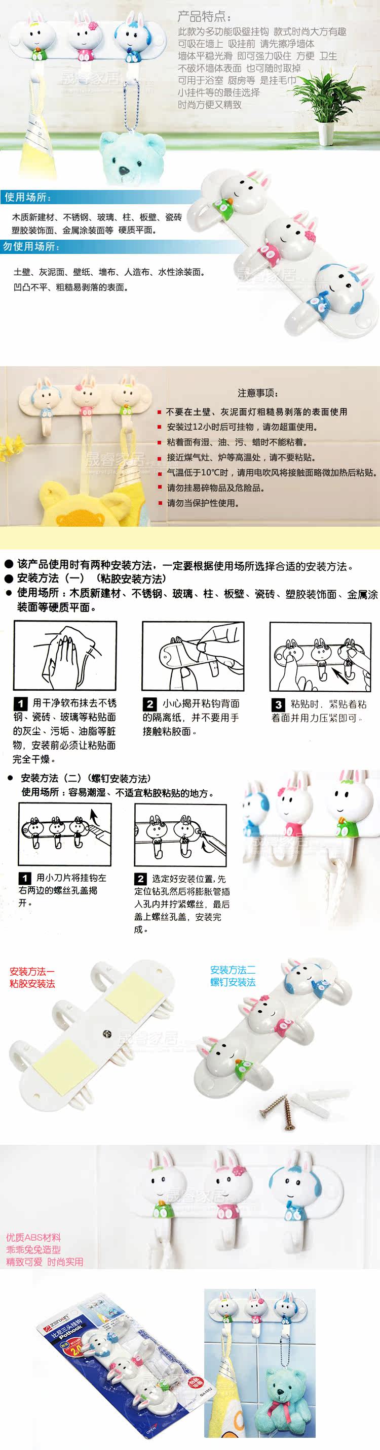 This section is a multifunctional suction wall hooks? fashionable and generous. Can absorb the wall before hanging suck? please wipe the wall? smooth smooth walls? can strongly held; convenience? health? does not destroy the wall surface? but also take down any time. Can be used in bathrooms? kitchens? etc.? is to hang towels? small pendant best choice? stylish? convenient and exquisite.