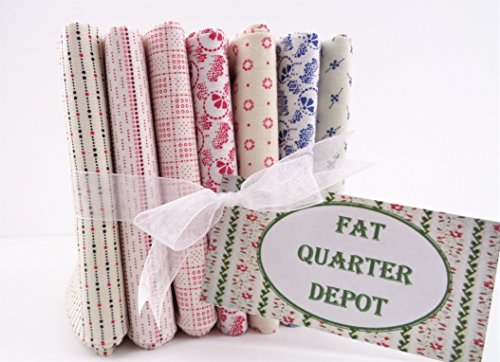 Fat Quarter Bundle 7 Red White Blue Shirting Prints Cotton Fabrics