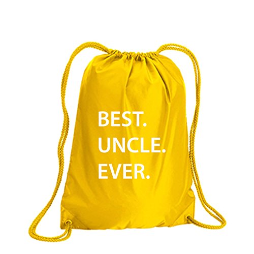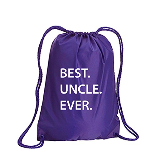 Product Description This durable and stylish nylon tote features "BEST.UNCLE.EVER." on a cinch pack tote with white ink. Bag comes in small and large sizes and is made of a durable 210 Denier nylon and has color-matched draw cords. Printed in the USA on an imported bag. 0
