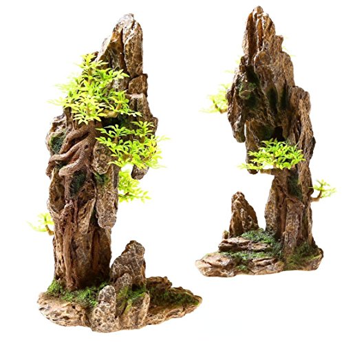 -. Title : Mountain View 13.8" H Aquarium Ornament Decoration - fish tank tree Cave Resin