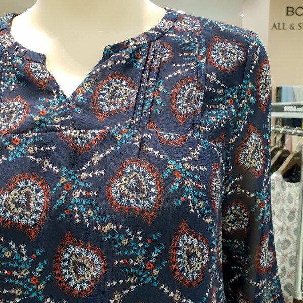 에스닉패턴 블라우스입니다안감이있어 비침을방지해줍니다