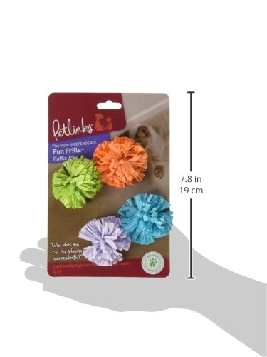 Product DescriptionPetlinks Fun Frills Raffia Ball set of 4 ball toys will satisfy your cats excitement and hunting needs, in 4 fun colors!.0