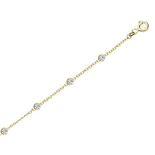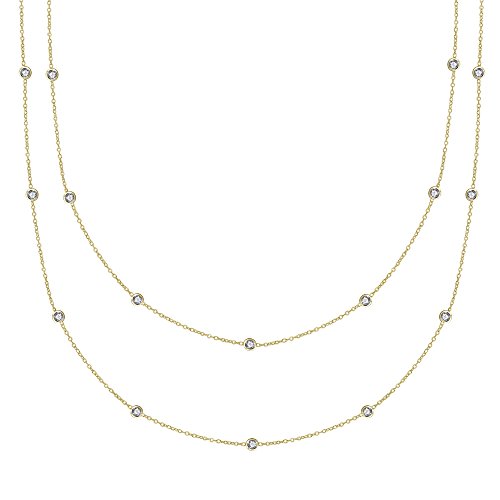 Genuine 925 Sterling Silver Gold Tone Cz by the Yard station necklace