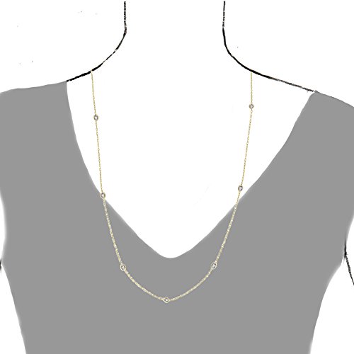Genuine 925 Sterling Silver Gold Tone Cubic Zirconia Cz By the Yard Chain Necklace
