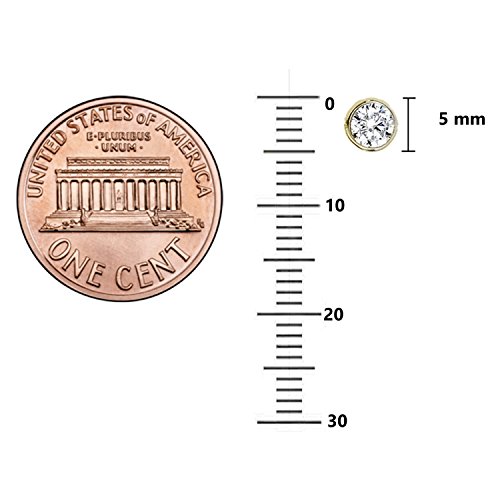 Brilliant white cubic zirconia stones, each in a bezel-setting