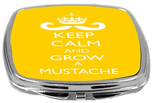 Rikki Knight Compact Mirror, Keep Calm and Grow a Mustache Yellow