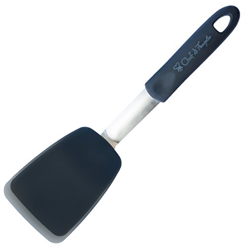 Chef di Famiglia 3-Piece Silicone Flexible Turner Spatulas Set | Stainless Steel Metal Core | Heat-Resistant Tools | Non-Stick Cooking Utensils | Round (Large and Wide), Standard and Long Spatula