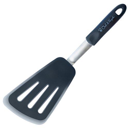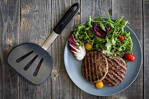 STAINLESS STEEL TECHNOLOGY - Flat flex head and handle ( with holes for hanging and finger molds ) designed with stainless steel metal for hard-wearing, flexibility and durability and won't break like cheap plastic tools. The home and commercial kitchens tool kit includes - Round slotted / holed tray (Large and Extra Wide), Standard / Medium shaped spatula and Long slotted / holed