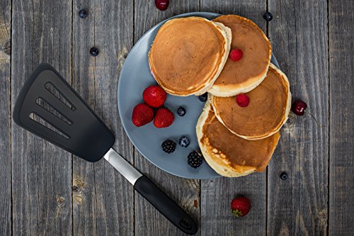 FLEXIBLE SILICONE NON-STICK TURNER SPATULAS - Spatulas set guarantee flexibility, made with high-heat resistant reinforced thin silicone blade and ergonomic design makes it suitable for turning / flipping / mixing / baking / sauteing / lifting / stir-fry fish, eggs, vegetables, brownies, omelettes, burgers, pizza, hamburgers, cookies, wok, bbq, pancakes, pies, crepes without breaking/scratching