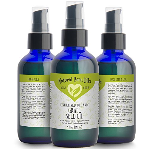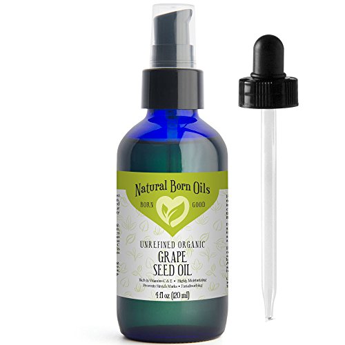 SALE! 4oz Grape Seed Oil, 100% Pure and Natural, Organic, Moisturizer for Skin and Hair - Includes Dropper & Pump