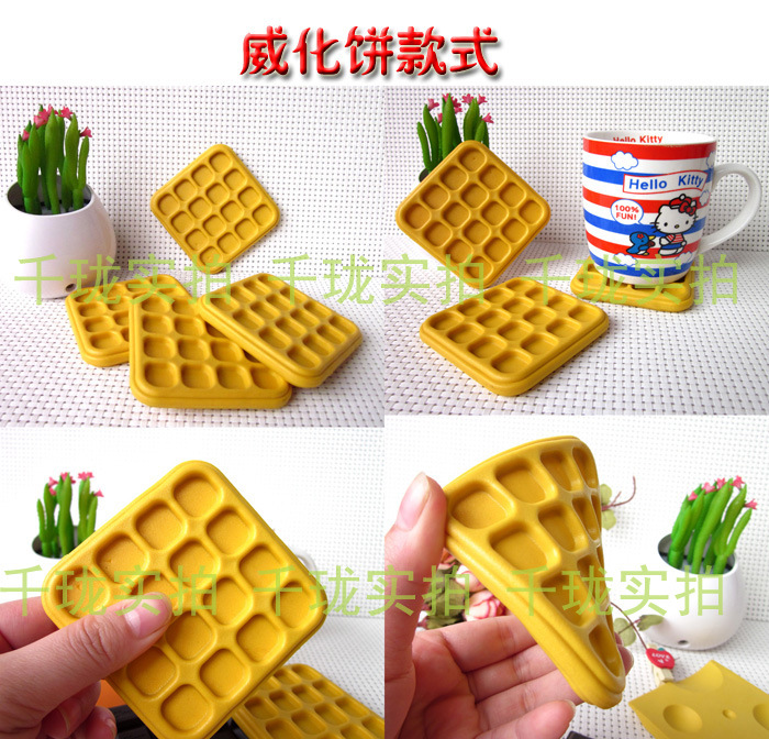Snacks coasters? lets the human drool with envy! Crackers? cheese? muffins?chocolate? wow! So many delicious things? get a pot of tea or Coffee to enjoy this!Wait a moment. These but put cup coasters. Modeling realistic snacks coasters?although cannot satisfy your appetite? can still surprise and topic little for your dessert date!