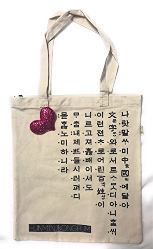 Hunminjeongum Canvas Eco Bag with a Red Heart Brooch