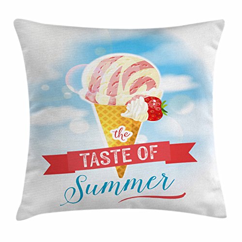 (Ambesonne)/Bedding Bath/Bedding/DIRECT FROM USA/Ice Cream Throw Pillow Cushion Cover by Ambesonne, The Taste of Summer Quote with Cone and Stra...