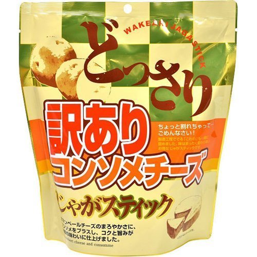 原材料:じゃがいも(遺伝子組換えでない)、植物油、食塩、コンソメシーズニング、チーズシーズニング、調味料(アミノ酸等)、香料、二酸化ケイ素、甘味料(甘草、ステビア)、香辛料抽出物、着色料(カロチノイド)、酸味料、(原材料の一部に小麦、大豆、鶏肉、豚肉を含む)
