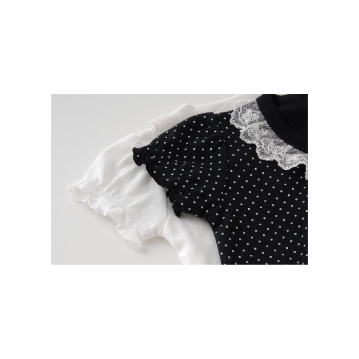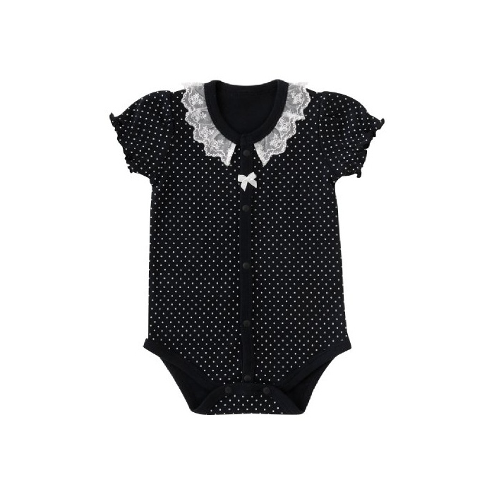Abt (척(Chuck)《루》) chuckle 갈아 입기 간단!레이스 옷깃 앞 열림 반소매 롬퍼스(rompers) 블랙 70cm P2172-70-01
