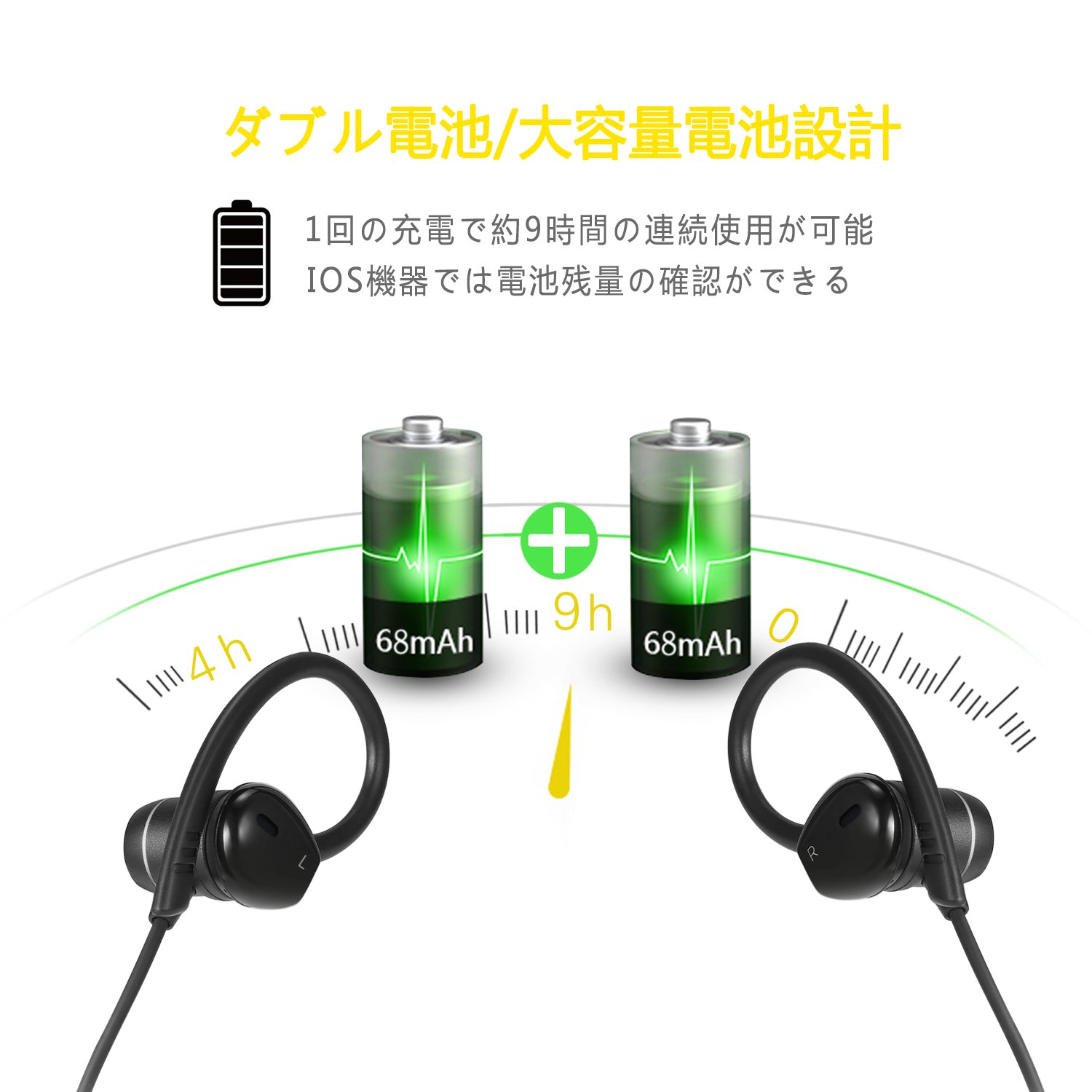 It is possible to play music for 9 hours with just 1 to 2 hours of charging.