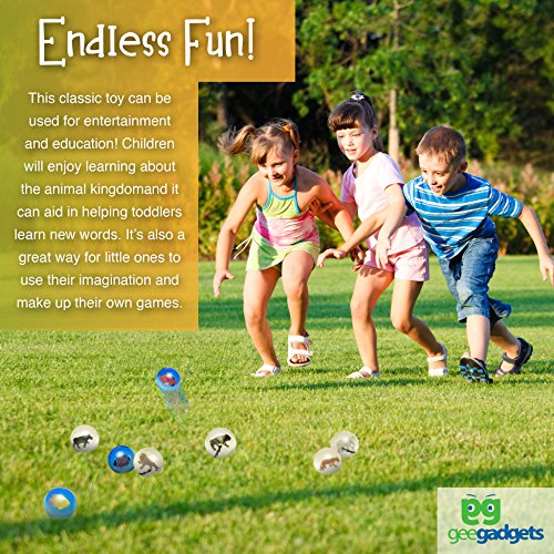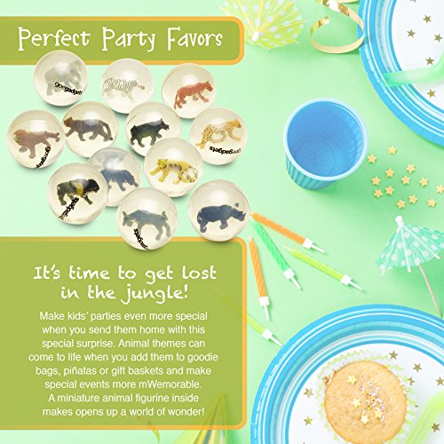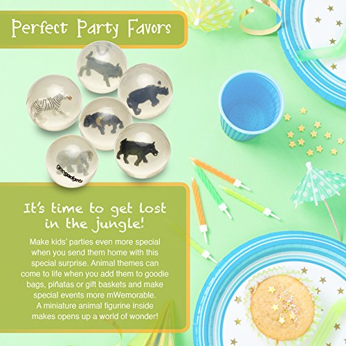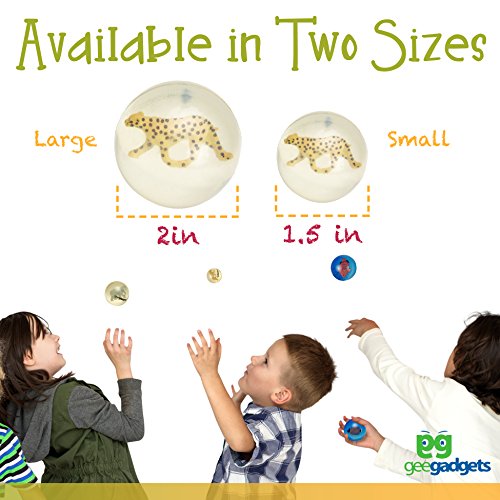 -. Brand : Gee Gadgets -. Feature : SUPER BOUNCY: They can be used for games, activities, learning and more. A high bounce rubber and a perfectly rounded sphere make them extra bouncy so children can throw them as far as they want. / SURP.R.ISE INSIDE: All of your kid's favorite animals take shelter in these transparent rubber balls. Hours of fun is provided for kids with a classic toy that can also be used as an effective educational tool. / PARTY FAVORS: Send kids home with a surP.R.Ise! These fun bouncy balls are perfect for gift bags, giveaways and P.R.Izes at birthday parties or holiday events. They're great for animal or wild life themes. -. IsAdultProduct : 0 -. Label : Gee Gadgets -. Manufacturer : Gee Gadgets -. ProductGroup : Toy -. ProductTypeName : PARTY_SUPPLIES -. Publisher : Gee Gadgets -. Studio : Gee Gadgets -. Title : Clear Bouncy Balls with Animals - Mini Rubber Bouncing Ball Toys – Great Gift for Kids Party Favors, P.R.Izes and Rewards – by Gee Gadgets