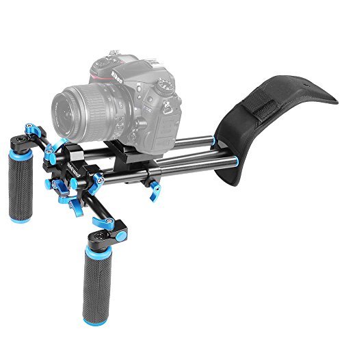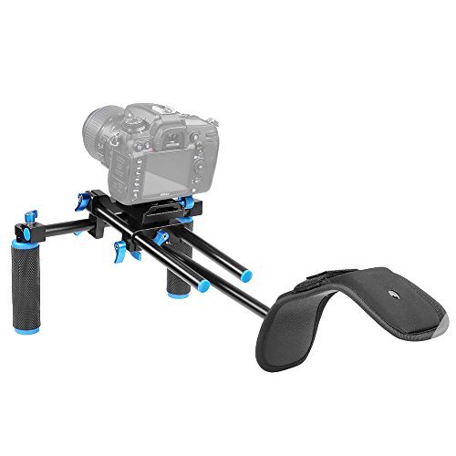 The Shoulder Mount (with C-shape pad) makes it possible to deliver excellent results without any jerk or motion problems. The shoulder mount also eliminates the fatigue brought about by trying to balance your video camera or DSLR.The Camera/Camcorder Mount is applied for NOT ONLY stablizing the device in the structure BUT ALSO made as slider on 2 rail rods for video zooming without adjusting the camera lens.The handgrip (Dual) in this kit makes it portable in video making in various occasions and conditions.