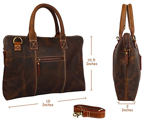 ✅ Dimensions: 15x10.5x2 Inches. Rustic Town is connected with a number of Organizations within India which work to bring employment to artisans and keep alive traditional skills.Stylish Design : Have a boring briefcase? Not anymore. Your leather business bag has raw character that improves with age. Oil rubbed & distressed, it's vintage at its best.