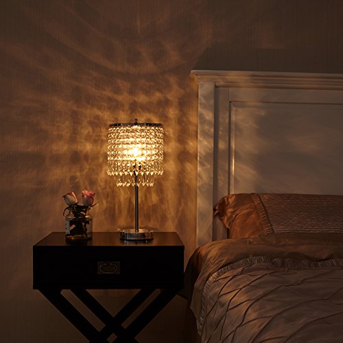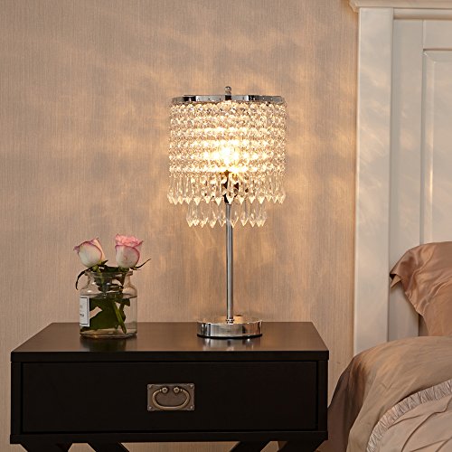 Glanzhaus Modern Design 17" Clear Crystal Raindrop Beads Lampshade Metal Base Crystal Table Lamp, Crystal Silver Table Lamp Beside Lamps for Bedroom Living Room