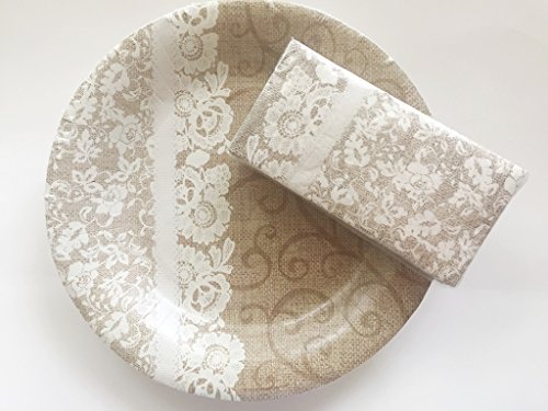 Burlap & Lace 10.5 inch Paper Plates & Napkins Bundle, Tableware, Country Chic, Vintage, Barn Weddings, Tea Parties