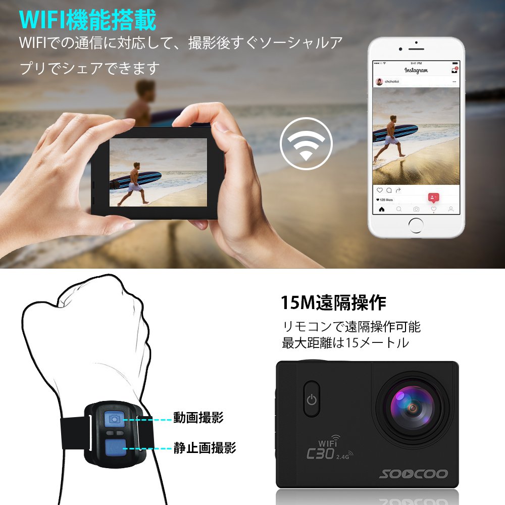 Compatible with WiFi communication, you can control shooting with Wifi by downloading and using "SOOCOO ZONE" application on App store (iOS) / Google play (Android).