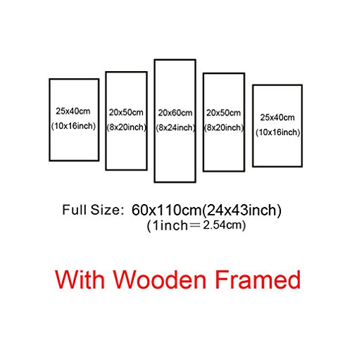 Size :10x16Inchx2Pcs 8x20Inchx2Pcs 8x24Inchx1Pcs( 25x40CMx2Pcs 20x50CMx2Pcs 20x60CMx1Pcs). Form: Five-picture Combination
