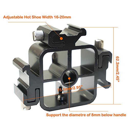 3 INDENDENT ADJUSTABLE HOT SHOES- This flash mount bracket is designed with 3 independent adjustable hot shoes . It is useful for you to connect the tripod with flash light and soft umbrella, which helps you to get an optimum angle for great photographic results.