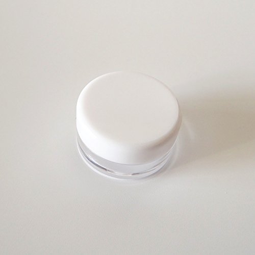 Quantity - 50pcs 3 gram plastic empty sample containers, ROUND pot with WHITE screw lids. Diameter is about 1.1 inch and the height is about 0.5 inch.