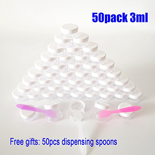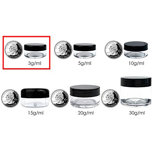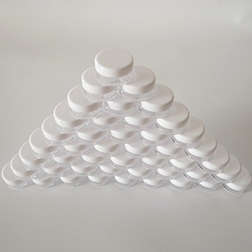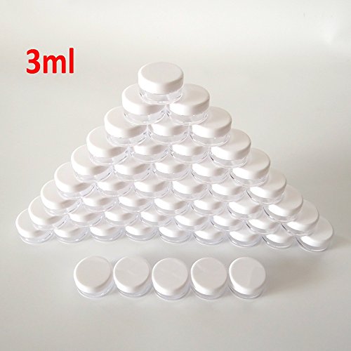 50 PCS, 3 Gram 3g Empty Plastic Cosmetic Sample Container for Make-up Eye Shadow Nails Powder Gems Beads Jewelry Paint Cream, Small 3ml Clear ROUND...