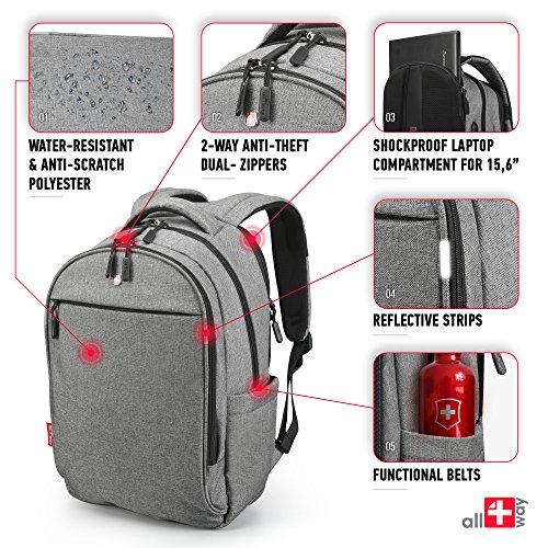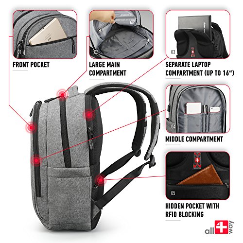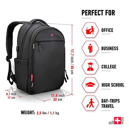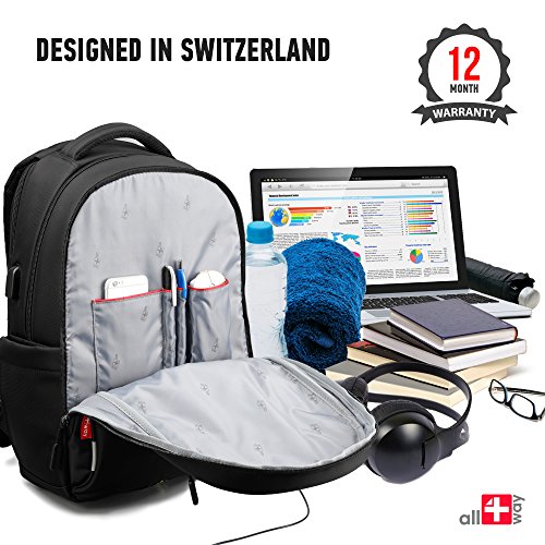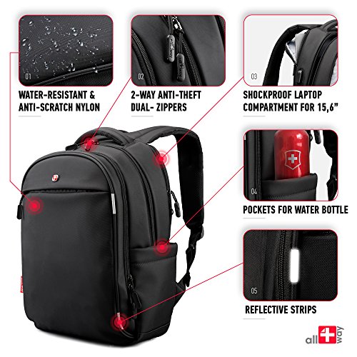 -. Feature : PERSONAL SECURITY: ✔ RFID Blocking pockets for protection for your IDs and credit cards ✔ Reflective strips ✔ Hidden pocket for valuables ✔ Anti theft backpack with 2-way dual-zippers / COMFORTABLE BACKPACK: ✔ Travel backpack with Airflow system and soft handle ✔ Padded and adjustable S-shaped shoulder straps ✔ Lightweight backpack - promote all-day enjoyable carrying / QUALITY & SAFETY: ✔ Shockproof backpack for laptop up to 16 inch ✔ Backpack rain cover usable as a airport cover ✔ Durable waterproof backpack ✔ Anti-scratch nylon backpack ✔ Easy to use and clean / WELL ORGANIZED: ✔ Computer Backpack with compartments for notebook, tablet, ebook, folder, phone and other items ✔ External USB Charging Port to charge your devices ✔ Side pockets for water bottle & an umbrella / STYLISH BACKPACK: ✔ Casual backpack perfect for business, high school, college, office and day-trips travel ✔ Sunglass straps ✔ SWISS design with a lot of unique features for everyday