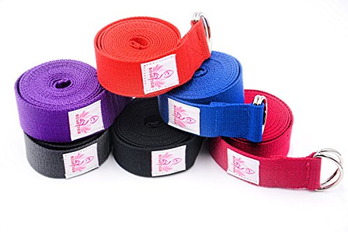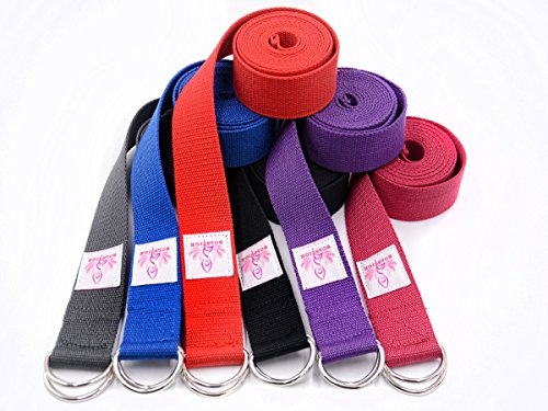 Solstice Adjustable 8ft Yoga Strap (6 colors), Use for Poses, Flexibility, Strength, and Trainig - D-Ring Buckle - Durable Cotton Construction