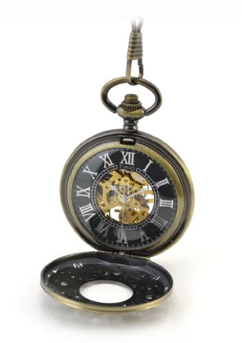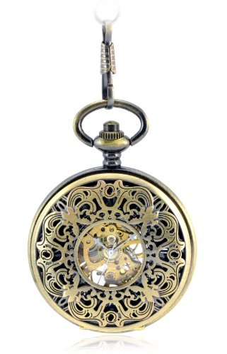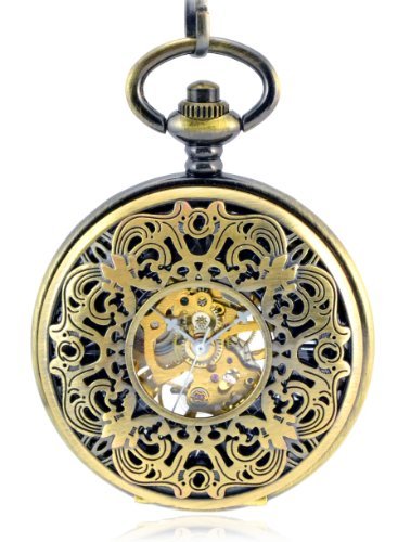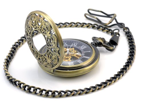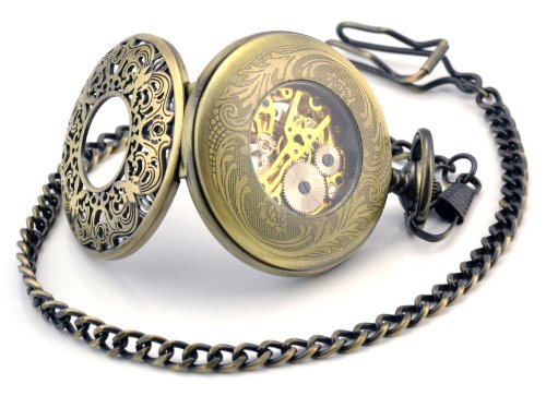 -. Feature : ★ Half Hunter Pocket Watch Renaissance Antique Look / ★ Skeleton Dial with Hand Wind Mechanical Movement / ★ 100% Brand New and High Quality! / ★ Metal Chain Length 365mm (14 inches) / ★ Nice gift for your father, your family or your friends