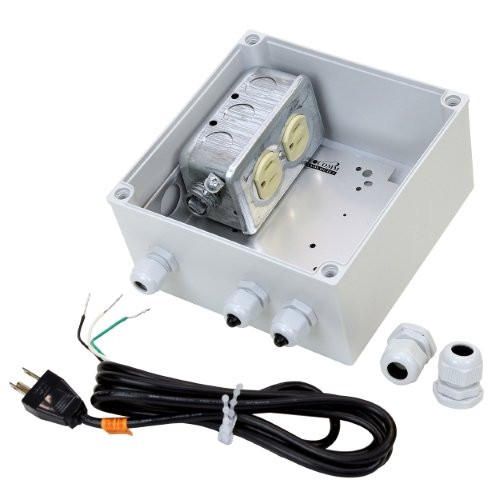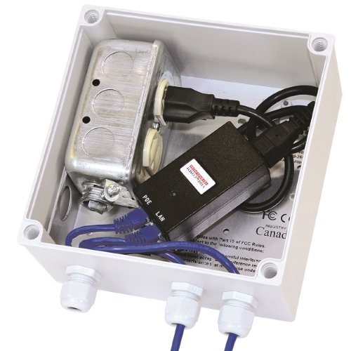 -. Feature : All-Weather protective junction box / power box, for connecting or extending outdoor electrical devices. / Best choice for extending & connecting outdoor power supplies, extension cords, outdoor lighting, security cameras, PoE Injectors, wireless access points, power tools, etc. / Convenient Internal 15Amp / 120Volt Duplex Receptacle Power kit with 6 feet Power Cable / Includes weatherproof grommets for perfectly sealed electrical wiring and internal connections / Multi-Purpose Stainless Steel Wall / Pole Mounting Bracket and Hardware