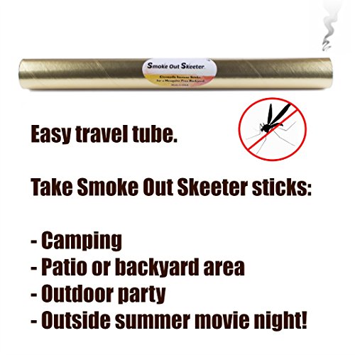 - PROTECTIVE DURABLE PACKAGING AND EASY TO SET UP - Simply remove mosquito repellent sticks from the long tube (easy for storage and bright gold - easy to find). Place stick in ground, pot, or other non-flammable container, then light the tip of stick; let flame burn 15 seconds and blow out so all that is left is the smoke. A great multi-purpose completely safe solution to problems with bugs around your home. Keep graduation parties free by using a repelling lawn bug Smoke Out Skeeter solution!